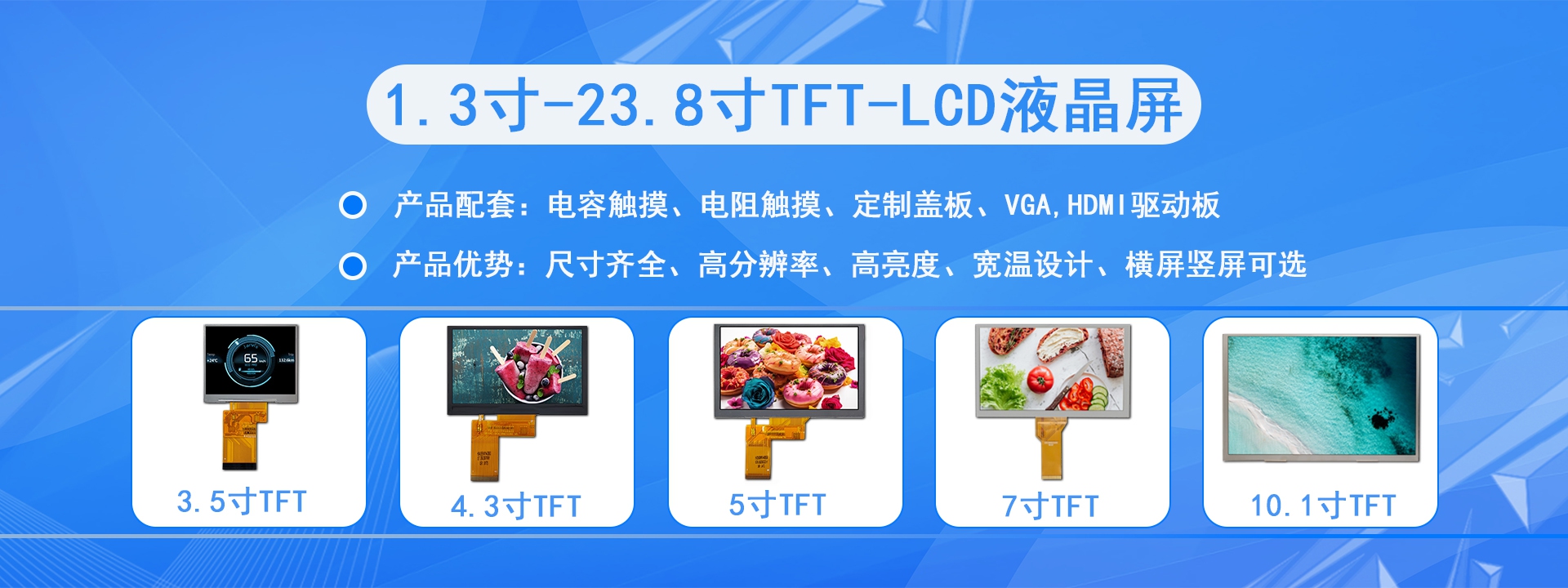 品類齊全( 0.96~27寸常規屏、條形屏、方形屏、圓形屏、半反半透屏) 常備庫存(常規尺寸1~5k安全庫存) 支持小單( 常規尺寸1pcs起訂)